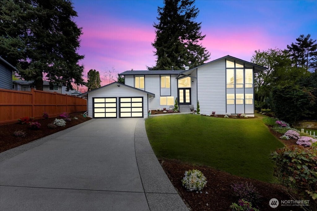 Nestled in a serene cul-de-sac, this exquisite 6-bed, 2.75-bath sanctuary exudes luxury with lush landscaping and a sprawling fenced backyard. Soaring vaulted ceilings and radiant sunlight illuminate the expansive living room and gourmet chef’s kitchen, featuring a formal dining area and sophisticated wet bar. The main level boasts three elegant bedrooms, including a grand primary suite with a lavish en-suite. The lower level perfect for multi gen living offers three oversized bedrooms, a full kitchen, and a vast rec room with a 3 panel slider. Modern upgrades include a new roof, furnace, AC, tankless water heater, deck, driveway, and EV charging. Steps from 132nd Square Park, Eastrail Trail, Totem Lake Village, I-405, & top-tier schools!