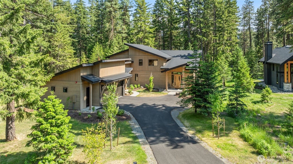 This Suncadia retreat blends modern design with natural warmth. Vaulted ceilings and high-end finishes enhance the inviting ambiance, while the gourmet kitchen—featuring Signature appliances and Taj Mahal quartzite countertops—elevates everyday living. A custom bar cabinet adds a touch of sophistication for entertaining. The main-floor primary suite offers a private escape, complemented by a flexible upper loft for extra living space. Outside, an expansive patio with outdoor heaters and a custom fire pit ensures year-round enjoyment of breathtaking scenery. Upgrades like custom blinds, a gas generator, epoxy-coated garage floors, and built-in garage shelving bring convenience to this stunning mountain home. Your dream getaway is here!
