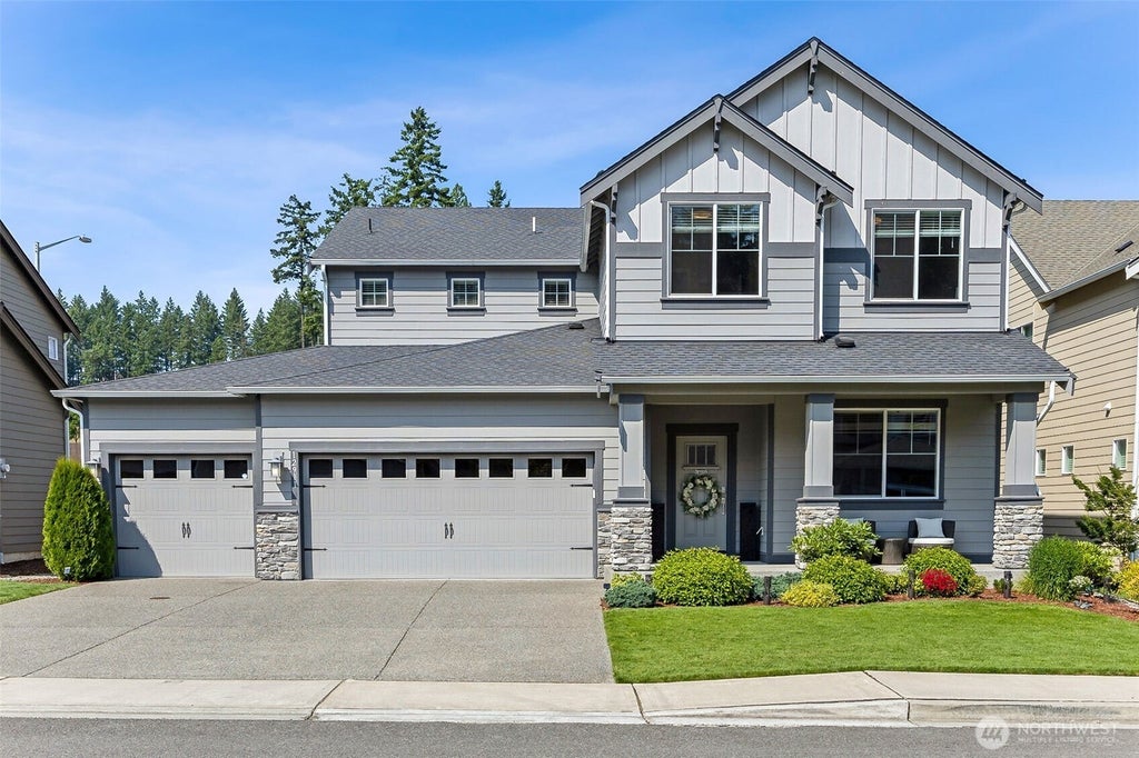 Discover this stunning like-new Lennar resale offering style, comfort, & functionality! Thoughtfully designed W/9-ft ceilings & welcoming entry ft. spindle railing. Main level W/versatile office/den W/French doors & LVP floors + guest room & ¾ bath. The chef’s kitchen boasts a gas range, double oven, quartz countertops, full-height subway tile backsplash, soft-close cabinets, & spacious WI pantry. Upstairs you'll find a generous loft, laundry, 3 guest rms, & luxurious primary W/sitting area, 5-piece bath, full tile shower, soaking tub, makeup vanity, & large WIC. Enjoy year-round comfort W/NEW A/C & washer/dryer (2025) & tankless WH. Relax outdoors under the large, covered patio. 3-car garage W/storage closet! Walking distance to schools!