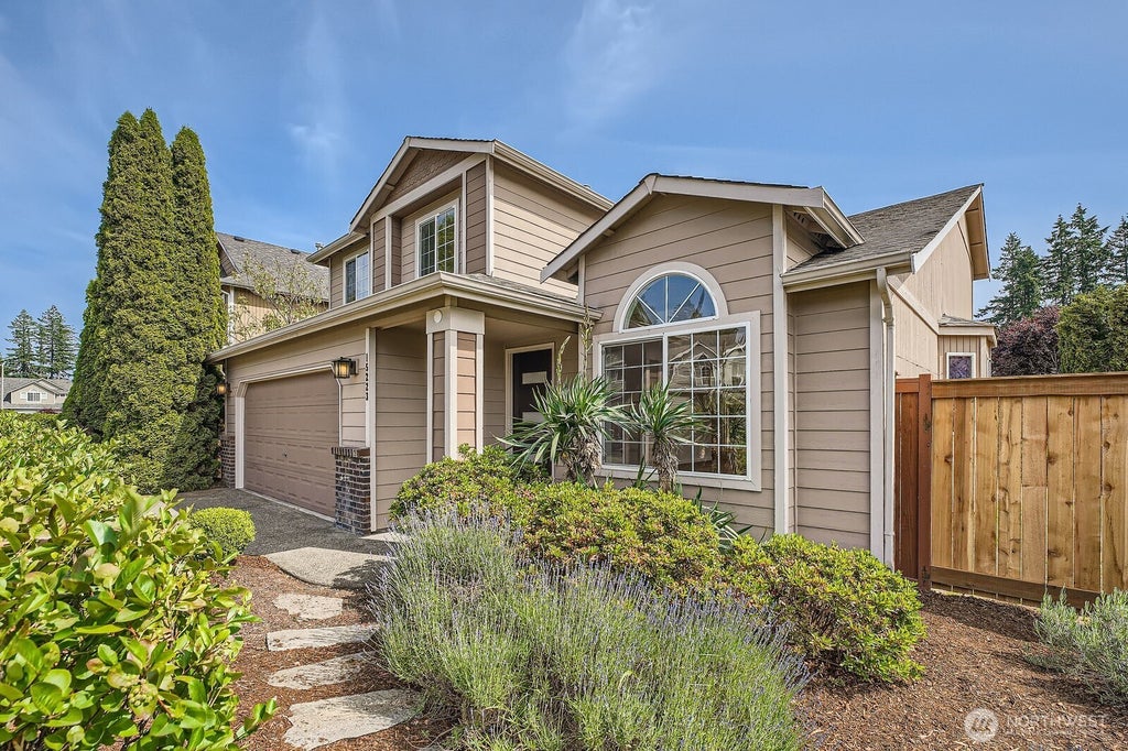 Newly updated home in Pacific Parke with 4 bedrooms, 2 bathrooms on the 2nd level and 1/2 bathroom on main level. Also features a bonus bedroom and bathroom on the main level with exterior door. New paint, hardwood flooring, carpet, bathroom vanities, features skylights, gas fireplace, vaulted ceilings, tile, walk in pantry, quartz countertops, dining room, family room, recessed lighting and Hardi-plank siding. Enjoy your private backyard to for BBQ, entertaining and gardening. Great location with easy freeway access, close to shopping, Costco & walking distance to Lake Meridian. Vacant, show anytime!