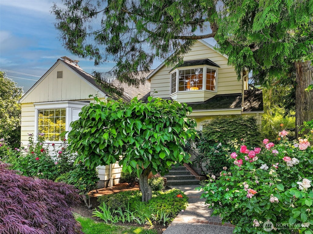 Overlooking the tranquil tree-lined Boulevard in the heart of Laurelhurst, a charming 1941 Cape Cod awaits. Abundant bay windows bathe the home in natural light, illuminating enchanting living and formal dining rooms. Burl walnut custom cabinetry, extensive millwork and flex spaces grace the main floor. Retreat to skylit upper-level primary suite with cathedral ceilings, 5-piece bath and laundry. Downstairs offers a cozy den, workshop, and guest room with bath and second laundry. Embraced by evergreens and maples, manicured grounds reveal a detached studio annex and 4 off-street parking spaces (2 in roomy garage). Spend summers at the beach club and stroll to U Village to enjoy the comfort, security and convenience of this coveted enclave.
