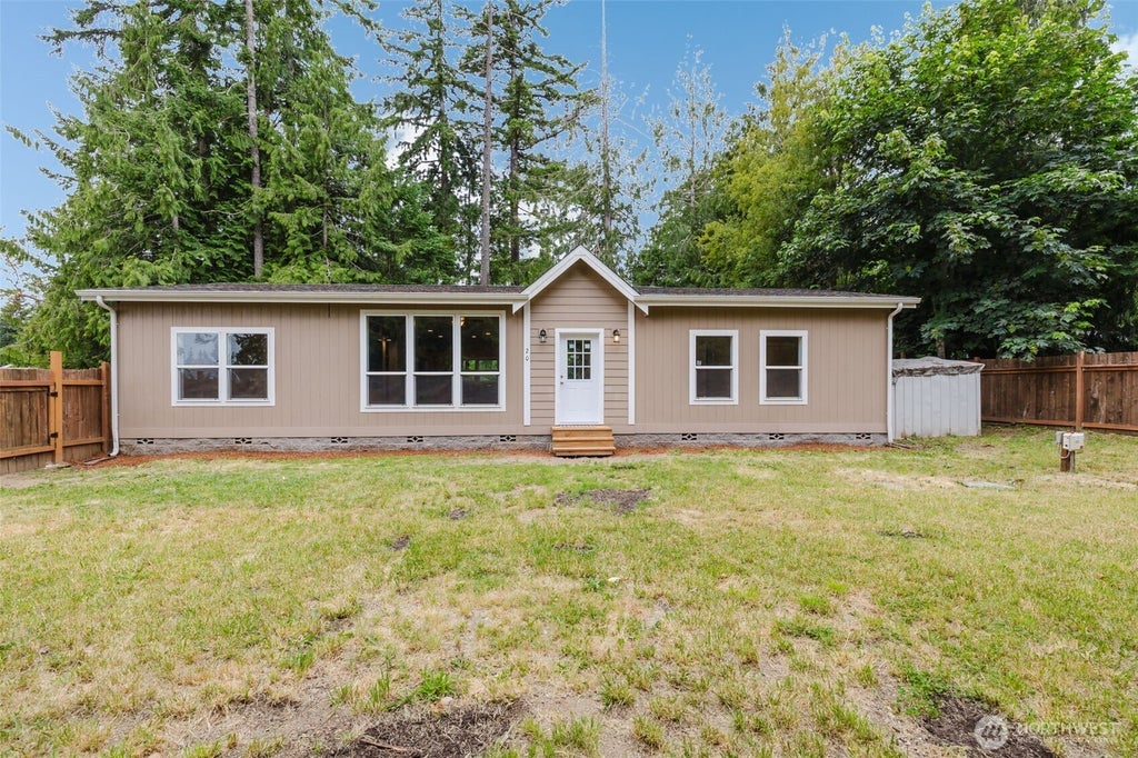 Welcome to this large corner lot, spacious 3-bedroom 2 bath home in the Shorecrest neighborhood. Home features 9' ceilings w/ open concept, large kitchen island, new laminate hardwood floors, trim and interior paint. Kitchen features real wood cabinetry and matching built-ins throughout the home. Primary bedroom features large master ensuite with spacious double vanity bathroom and HUGE walk-in closet. There's a large utility/mud room with separate entry. This lot provides a fenced yard, ALOT of off-street parking and you will also have plenty of room for your RV. The Shorecrest Community offers private saltwater beach access to Oakland Bay, boat launch, club house and swimming pool.