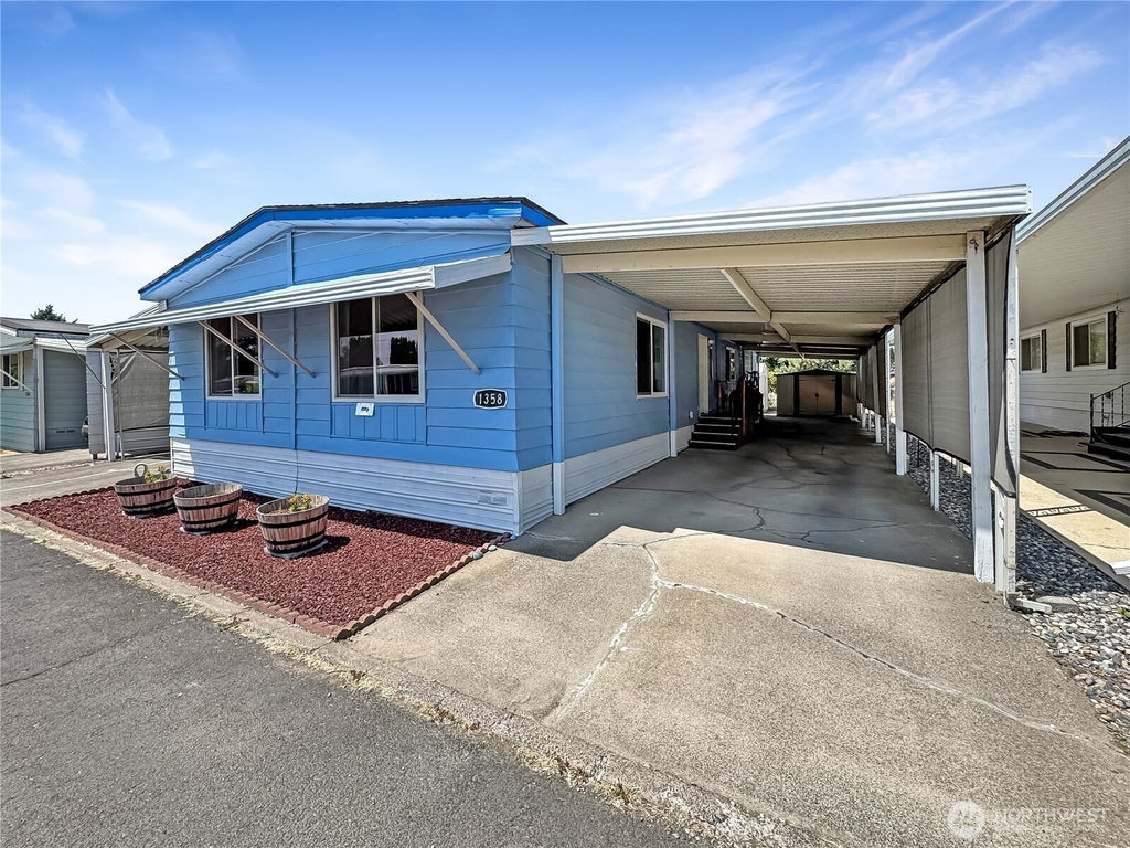 Step into comfort with this well-maintained manufactured home featuring a spacious and functional layout. The updated kitchen offers modern finishes and flows seamlessly into a large open living room and attached dining area—perfect for everyday living or entertaining. Just off the kitchen, you'll find a bonus living space ideal for a den, TV room, or home office. The primary suite includes an updated bathroom with a walk-in shower, while the second bedroom is generously sized for guests or additional needs. Enjoy year-round comfort with a newer AC system. Outside, the home features dual carports, providing ample covered parking, plus a handy shed for extra storage.