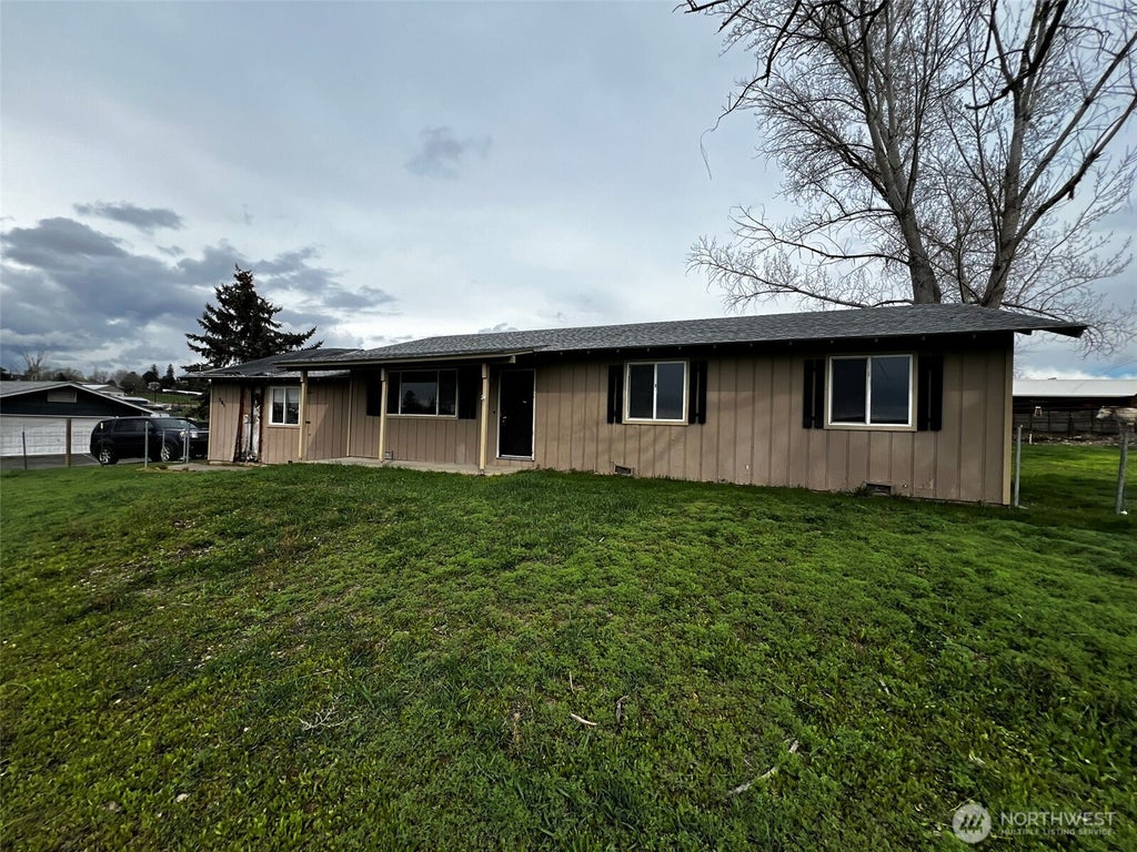 Selah home with a beautiful view and large yard. Located just 4 minutes from town. Home is an open concept 3 bedroom, 1 3/4 bath house that sits at the end of a private drive. Fully fenced yard, a fire pit and an attached garage sitting on just over a half acre. This is a Fannie Mae HomePath Property 6/25/25 Seller has accepted an offer.