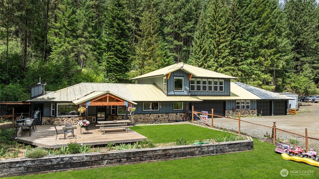 Backed by 351,000 acres of public land, this unique property offers privacy, space, & versatility. Features include a 4-car garage, 2 detached shops (1 insulated with 220V, tall bay, & separate power), plus 2 bonus rooms perfect for an office, crafts or workshop. Nearly everything has been updated: remodeled kitchen & baths, new LVP flooring, solid knotty pine doors, appliances, wood stove, HVAC & HardiePlank siding. Huge primary suite offers a walk-in closet, dimmable lighting & a bonus room ideal for a future ensuite. Outside, enjoy a covered patio with soffit lighting, GORGEOUS creek, fenced yard, playset & ample parking for RVs, boats, & trailers on the regraveled drive. ADU unit w/ bath & kitchen.