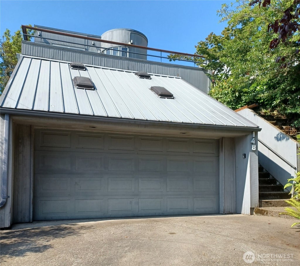 Fantastic Phinney/Ballard location! Walk to the zoo, parks, cool restaraunts, pubs & more. Super city and ship canal views, this home is full of windows that provide a bright and cheerful home! Four bedrooms, awesome and very unique spaces in the contemporary home. This home lives very large. Huge 2 car garage, plus parking in the driveway, a huge premium in the city. Large workshop, two patios, mature landscaping. Home needs cosmetic 'love', but solid. Water damaged wallpaper is from previous skylights and window, now replaced and repaired. Unique and ready for updates!