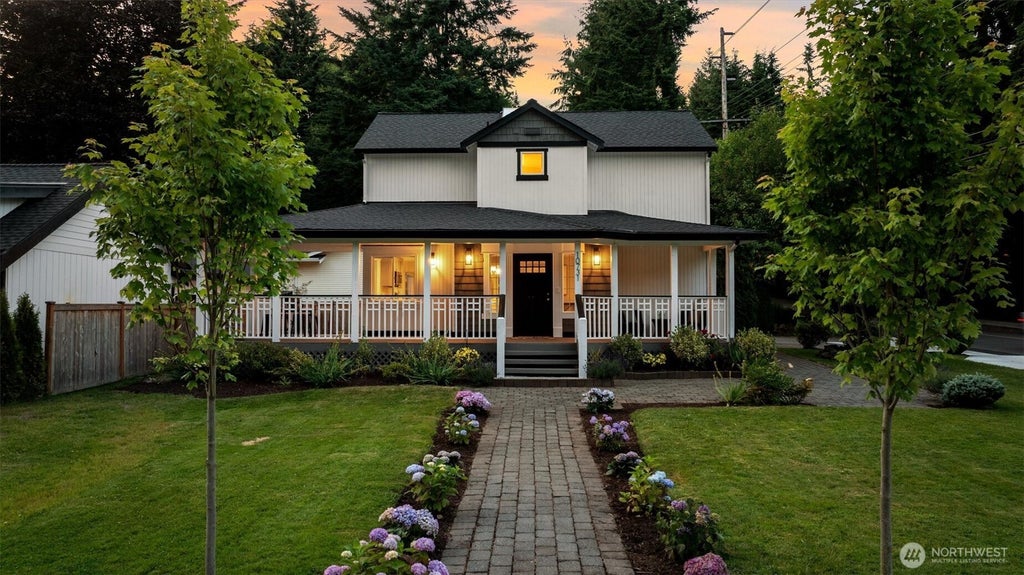 Seller offering rate buydown and/or credits toward allowable closing costs, downpayment or agreed-upon improvements. Additional incentives may be available with seller’s preferred lender, subject to lender guidelines and qualifications. Cozy farmhouse in prime Kirkland location. Nestled on a picturesque corner lot, this 2023 remodel blends timeless charm with modern sophistication just steps to Lake WA. Enjoy the wraparound porch, bay windows, custom wainscoting, engineered hardwoods. High-efficiency systems, Café appliances, elegant cabinetry, quartz counters. Vaulted primary suite with skylights and farmhouse bath with a deep clawfoot tub. Two flexible bedrooms for guests or office. Walk to schools, downtown, The Village, and trails.