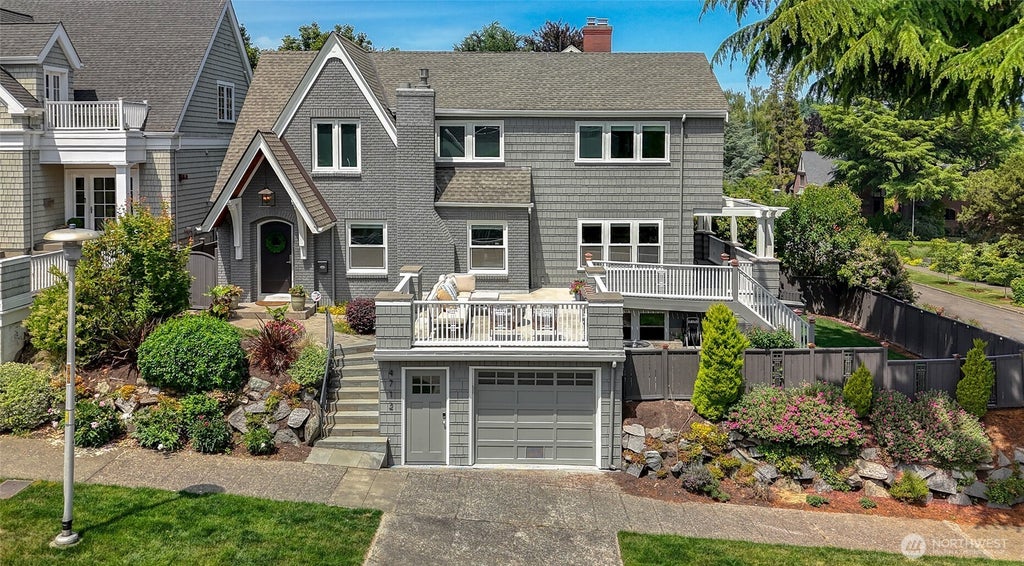 An awe-inspiring home that checks every box. Period details mesh perfectly with classy & timeless updates. Versatile main level floorplan flows seamlessly throughout. Gourmet kitchen boasts large island, marble counters and endless cabinets. Interchangeable dining & great rooms create multiple options. Office space easily fits 2 desks. Upper level boasts 4 bedrooms, including a primary suite w/ spa-like bathroom, W/I closet and captivating views. Lower level offers a huge guest bedroom, full bath and bonus/family room. A/C, multiple washer/dryer connections, earthquake retrofitting and EV hookup. Expansive wrap-around deck overlooks fenced yard. Laurelhurst Park and beach club just blocks away. Mins to Children's Hospital, UW and U-Vill.