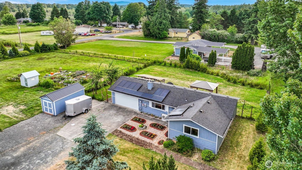Country charm just minutes from downtown Bellingham and I-5! Nestled on a picturesque 1-acre lot, this updated home blends cozy living with modern touches. The remodeled kitchen features poured epoxy counters, subway tile backsplash, a farmhouse-style sink, and a spacious pantry. With 3 bedrooms—including a primary suite with a private ¾ bath—there’s space for everyone. Step outside to a large composite deck with covered seating and a hot tub area, perfect for relaxing or entertaining. The fenced backyard includes a firepit, while the expansive side yard (approx. ¾ acre) offers irrigated raised garden beds, and fruit trees. Ample space for a future shop, RV parking, or your next project. A rare mix of rural living with city convenience!