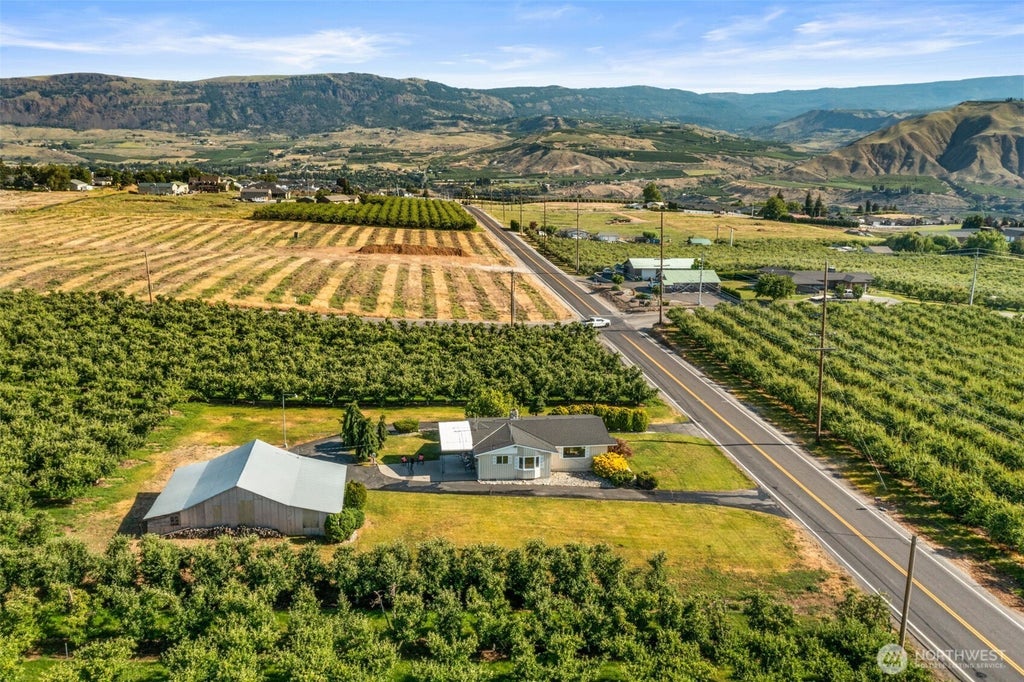 Nestled among orchards, this beautifully updated home offers quiet privacy, stunning views, and a circular driveway on a spacious lot. Inside, enjoy brand-new LVP flooring, fresh paint, and an open layout with a large kitchen, dining area, and living room with views of the foothills & orchards. The main floor features two bright bedrooms—including a primary with dual closets—and a full bath. The basement offers space for a potential bedroom (non-egress windows), game room, or second living area. Outside, enjoy a spacious covered patio, carport + SHOP space! Serene country living, close to town but just far enough from the bustle! NEW roof & NEW electrical panel!