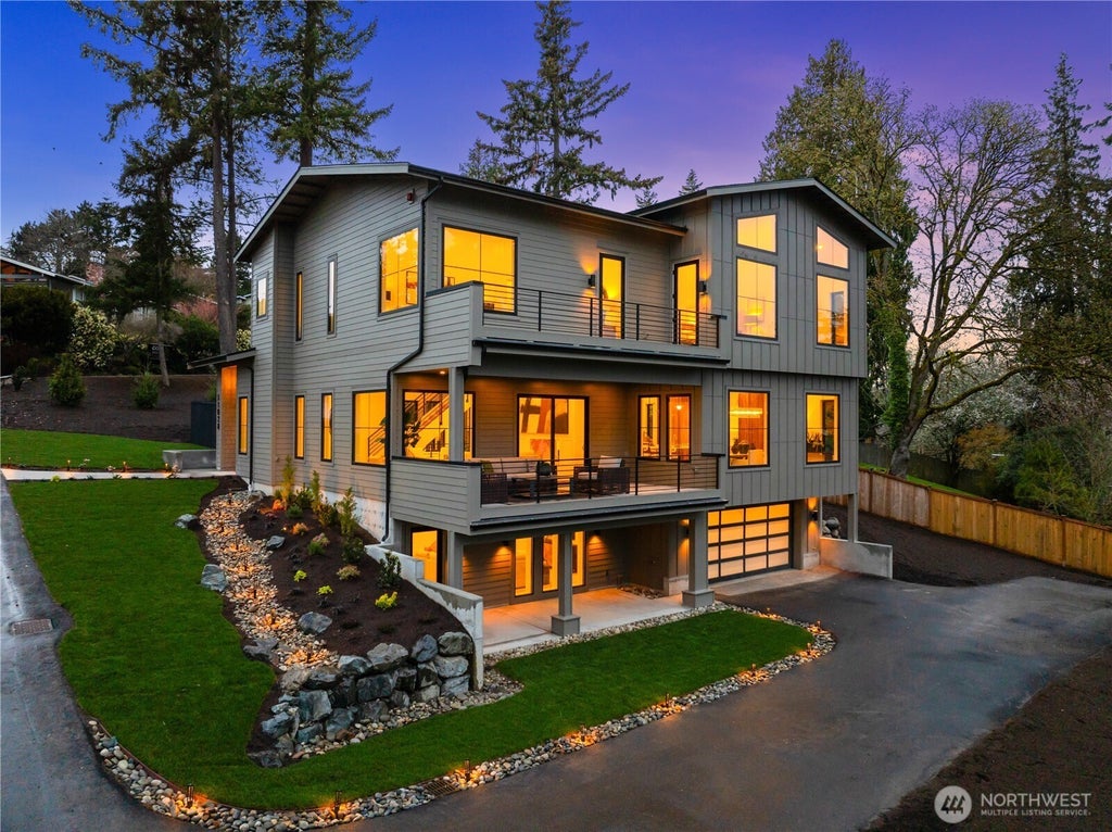 Just completed, this contemporary home by The Snyder Co. transforms living into an art form. Natural light and sweeping views of Lake Washington, the Cascades and the Bellevue skyline define a home that’s both sophisticated and deeply livable. A see-through fireplace anchors the main level, while designer finishes—wide-plank hardwoods, matte black accents, striking quartz slabs and statement lighting elevate every space. The kitchen with a scullery is built for seamless entertaining. All bedrooms offer lake views, including the primary suite with a private deck, wet room and heated floors. A fenced patio with twinkling lights sets the stage for intimate gatherings, while exclusive community beach access enhances the home’s Northwest appeal.