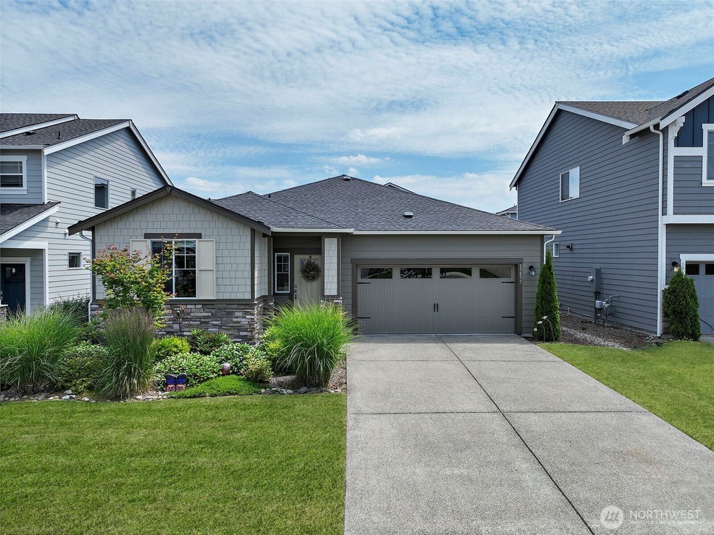 Welcome to this like new 3 Bedroom, 2 Bathroom rambler in the Crossings at Sunrise. Offering effortless one story living in a beautifully maintained, thoughtfully designed home. From the moment you step inside, you'll notice the open, airy layout and finishes that make this home truly unique. The heart of the home is the stunning kitchen featuring an expansive island perfect for gathering, sleek double ovens for the home chef and soft close cabinetry that offers both elegance and abundant storage Sliding glass doors open to your backyard retreat, complete with a 4 way producing Cherry Tree and thriving Red Grapevine. Located near beautiful parks, shopping, dining and scenic walking trails.