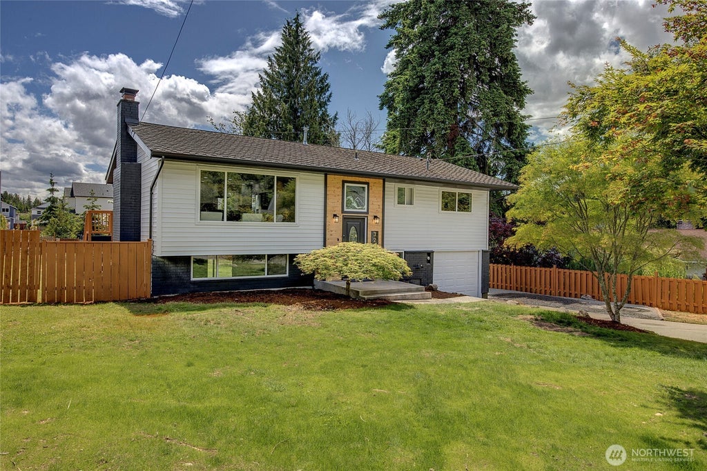 Situated on a large level lot near Lynnwood High School, this reimagined split-level in Bothell has a lot to offer. Kitchen has all new cabinets, quartz countertops & stainless steel appliances, including gas range. Open concept includes family room w/ electric fireplace, and dining room with slider that open to large deck with territorial views. 3 bedrooms upstairs, including primary suite with 3/4 bath. Downstairs is home to the living room, office/bonus room, laundry room with 3/4 bath, and slider that opens to patio and expansive backyard. Multi-generational living as-is, with options to build an attached (ADU) or detached dwelling units (DADU). All this + one-car garage, boat & RV parking - with easy access to shopping & restaurants