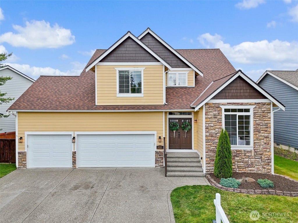 Spacious and full of light, don't miss this beautiful home in sought-after Mountain Creek neighborhood. Main floor includes newly refinished real hardwood floors, a dedicated office, mud room with side yard access, and laundry room. Enjoy easy entertaining in the large open-concept kitchen and family room. Upstairs, the spacious primary suite features a five-piece bath and a walk-in closet. A brand new roof, and 3-car garage with new doors and motors completes the package and adds peace of mind. Enjoy a serene, country feel while being just minutes from shopping, dining, Costco & less than an hour from Mt. Rainier. 1% rate discount offered by preferred lender, Kyle Wolcott w/ Guild Mortgage.
