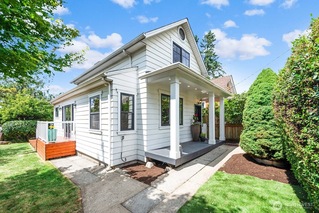 Sweet 1906 bungalow combining vintage charm & modern updates. Enjoy excellent curb appeal w/ a covered front porch overlooking the tree-lined street. On the main, find a chic living room w/engineered hwoods adjoining an open-concept kitchen w/ a high-end Wolf stove & a lavish full bath. The stylish sunroom is an excellent flex space w/additional storage. Up, find two bedrooms w/ vaulted ceilings, skylights, & a tastefully updated 3/4 bath. The accessory unit provides additional flexibility w/a potential studio suite, full bath, & fun loft. The Minotair system provides heating & cooling. Off-street parking off alley. Well-located near Flora Bakehouse, Beacon Hill, Georgetown, & Columbia City. See MLS#2395148 for adjacent vacant lot for sale.