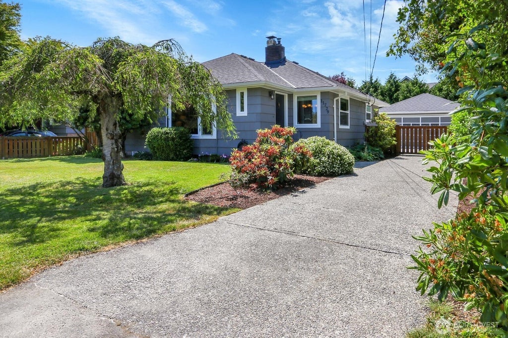 Wonderful mid-century home on a huge 7, 775 sq. ft lot. Enjoy updated kitchen and baths, red oak flooring and maple fireplace, and brand new windows on the main floor. Downstairs you will find a large open family room and multiple flexspaces for all your needs - bedrooms, office/crafts, music or workout spaces. Also includes built-in bar, pantry, and even a laundry chute! Incredible backyard includes mature landscaping, fruit trees, and a massive detached garage with lofted storage space. Large lot offers opportunity for DADU or even development of multiple additional units. Long driveway provides easy access for multiple vehicles and RV/Boat. Located near Carkeek Park, and close to schools, amenities, and public transit. Move-in ready!
