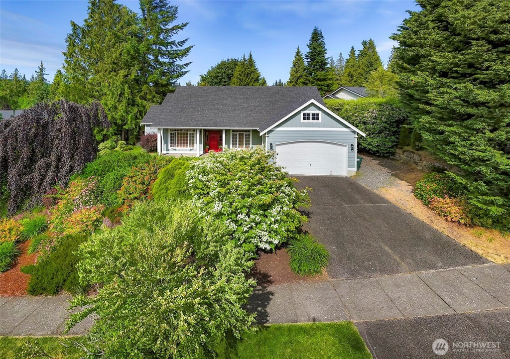 Welcome to a beautifully maintained Skeers-built rambler in coveted South Hills, offering views of Chuckanut & Galbraith Mountains. This 3 bdrm + office home has 10’ ceilings & large windows, inviting in tons of natural light. A spacious kitchen & open great room extend to a private patio, ideal for entertaining. The lg primary suite includes a soaking tub, separate shower, dual-sink vanity & walk-in closet. Two additional bdrms, one with a w/in closet, offer flexible living space. Upgrades include radiant floor heating, slate entry & great room, new roof, new carpet & paint, & 2 new water heaters. The home offers level entry and accessible baths with grab bars, comfort, and convenience. 3 blks to Lk. Padden, easy access to WWU and I-5.
