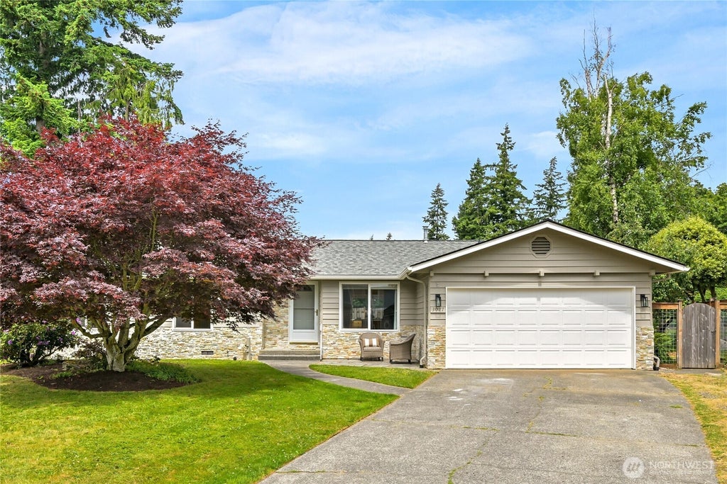 Charming and hard to find one level home nestled in a quiet cul-de-sac located high atop Alabama hill near Bloedel Park on Lake Whatcom, Whatcom Falls Park, and miles and miles of picturesque walking trails. Bright and inviting enhanced by large glass sliding doors, skylights, and vaulted ceilings. A newer kitchen with a large island and hardwood floors adjacent to a cozy family room with a gas fireplace, and both dining and living rooms. Large investments were just made in the following upgrades: new roof, paint inside and out, carpet, skylights, and all brand new stainless steel kitchen appliances. Enjoy a peaceful and fenced backyard with multiple fruit trees, raised garden beds, and an oversized sun deck. Turnkey and ready to enjoy!