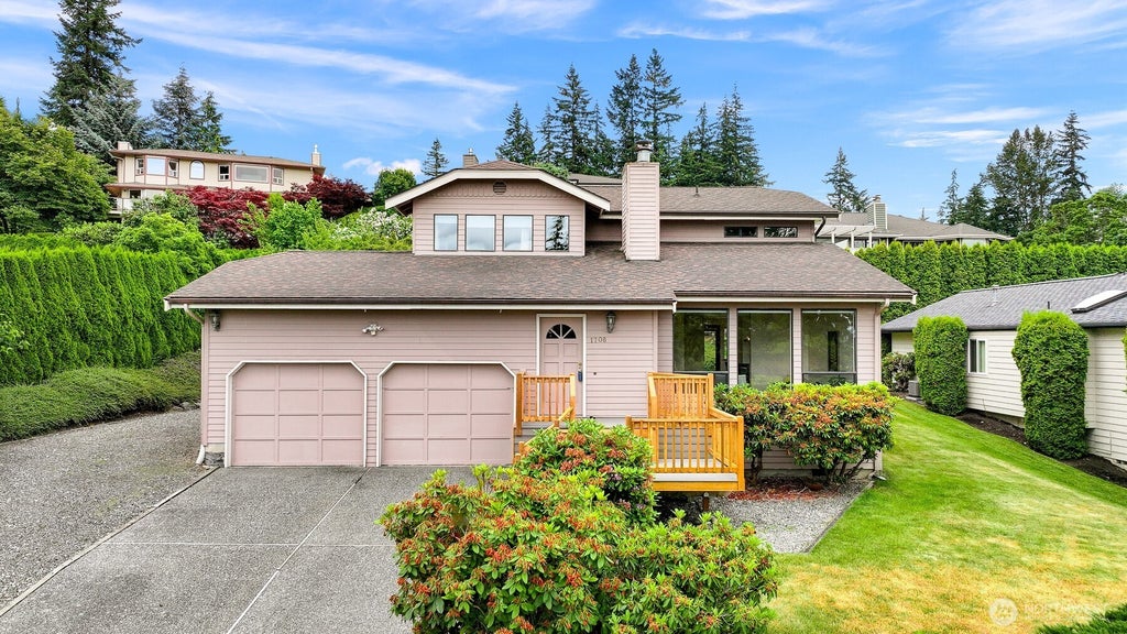Welcome to this captivating Puget neighborhood gem, where thoughtful design meets ideal location. Bathed in abundant natural light, this exceptional home offers serene territorial views from multiple vantage points, creating an atmosphere of openness and tranquility throughout.The intelligent floor plan features all bedrooms positioned upstairs for privacy, while the main level boasts two distinct living spaces for versatile everyday living. Step through the front door to be greeted by an elegant, sunken formal living room that sets a sophisticated tone for the entire home.