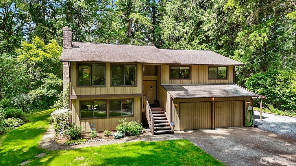 Machias Ridge Estates! Mid entry with something for everyone! 3 Bedrooms up with a Den down. As you come on down the driveway you will love the nature setting. Kitchen & dining with gleaming parkay floors. Living room with vaulted ceilings and large windows. Mini split ductless will come in handy in summer and winter too. Downstairs has a huge recreation room with wood insert and wet bar. Chicken coop! Good storage! This home comes with river frontage one road over. Lots of personality ready for the new owners to put their spin on things! Not too far from Highway 9 in between Snohomish and Lake Stevens. Come over to the country!