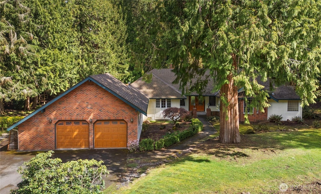 Tucked onto a lush, green corner lot, this peaceful Woodinville rambler offers the rare chance to completely reimagine a home in one of the area’s most desirable neighborhoods. The layout is warm and welcoming, with generous bedrooms, great flow, and brick accents that hint at the home’s enduring charm. An ideal canvas for thoughtful updates and high-end customization, the remodeled primary bath, new furnace, and completely upgraded crawlspace offer a head start. The oversized yard provides space to garden, play, or create your dream retreat and the expansive wraparound deck invites outdoor living. Complete with a two-car garage and extra parking, all just steps from the Tolt Pipeline Trail.