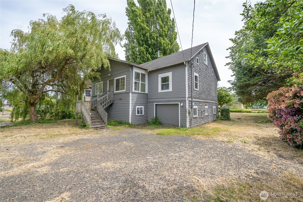 Discover comfort and charm in this updated 3-bedroom, 2-bath home offering a thoughtfully designed living space. Inside the living room features a wood stove and easy-care laminate floors, along with a stylish kitchen featuring granite countertops and tile flooring. Both bathrooms shine with contemporary tile finishes. The primary bedroom includes a full bath and walk-in closet. A covered front porch and back deck add additional space. Enjoy an oversized backyard with fire pit. The one-car garage offers added convenience along with extra storage in the unfinished basement space.