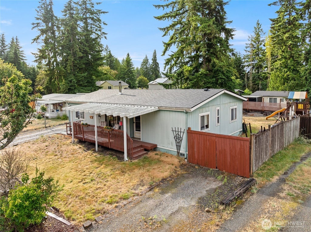You’ll love this spacious, single-level Spanaway home with all the perks! Close to JBLM, shopping, as well as walking trails. On a quiet cul de sac, this home sits on 8,625 SF lot with mature landscaping. Fantastic covered front deck is perfect to sit & relax. 3 bed, 2 bath 1,185 SF home. Open concept living area with vaulted ceilings. Spacious family room w/wood burning stove, dining room & kitchen. Primary bedroom has walk-in closet & attached full bath. Additional 2 bedrooms are split with a full bathroom. Fully fenced backyard. Covered back deck is converted to a “catio” but would perfect for outdoor living & entertaining. Storage shed as well as gardening shed. Heat Pump for AC during the summer! New roof in 2023. Plenty of parking!
