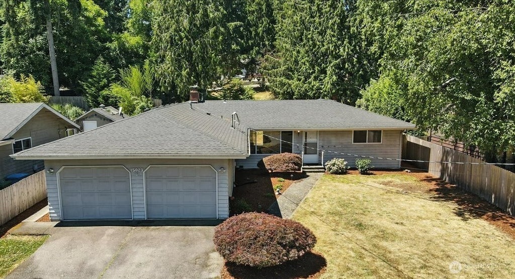Tucked right in the middle of Shoreline, this mid-century single story home is filled with natural light and warmth. Open floor plan offers natural flow throughout the home. Formal dining room that's adjacent to the huge kitchen makes formal dinners and entertaining at home easy. Unique wraparound brickwork in the family room and kitchen frames the fireplace for that classic mid-century feel. Hallway and bedrooms offer wood flooring under the carpeting. Recent updates: newer furnace, water heater, electrical panel, and cleaned and insulated crawl space. Large shop area with additional storage is adjacent to the full two car garage. Backyard is fully fenced. Nestled in a quiet neighborhood of custom homes close to shops, schools and I-5.