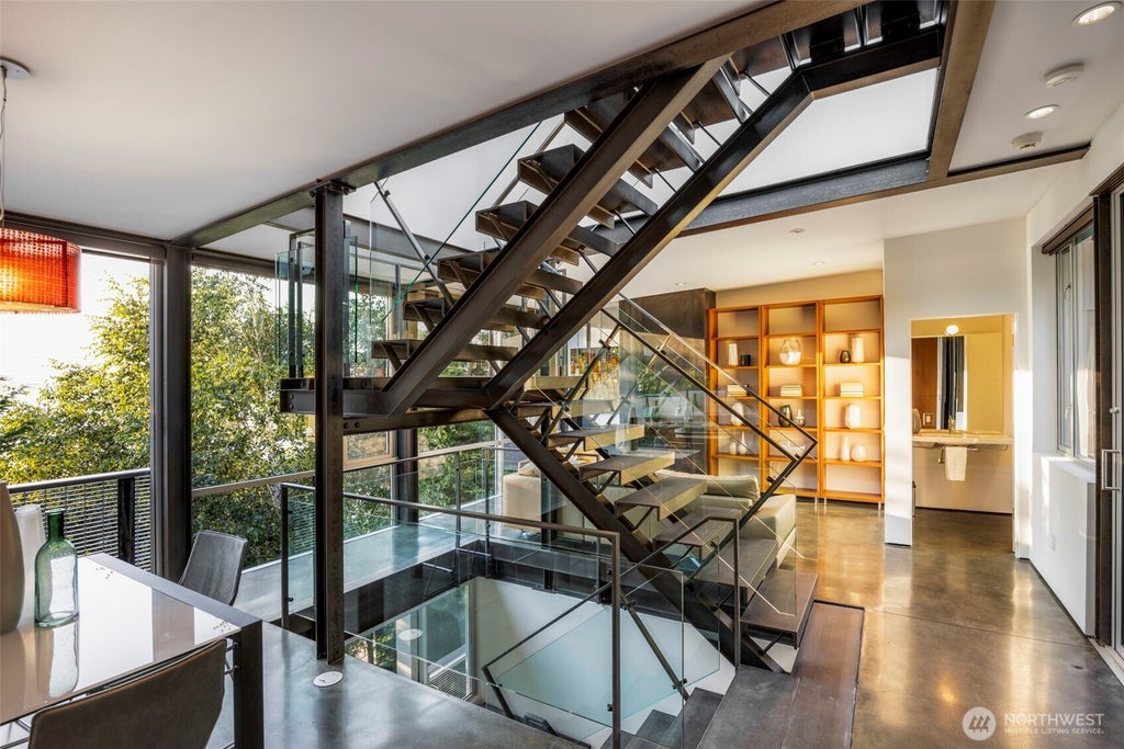 One of three residences in the acclaimed “56 Piles” project, designed by Eric Cobb Architects. In a class of its own, this home encompasses modern design and an incredible mixing of the elements; steel, concrete and glass, set against a stunning menagerie of trees and spanning views of Puget Sound. Luxury finishes throughout, including SubZero fridge with custom cabinetry, two distinct interior living areas, a custom, four-piece primary bath, and a unique, oversized garage with a view. Memorable roof deck one level up from main offers tons of space to entertain and enjoy endless summer sunsets. Just one block up from beloved Alki and a short commute to both Downtown Seattle and Bellevue.