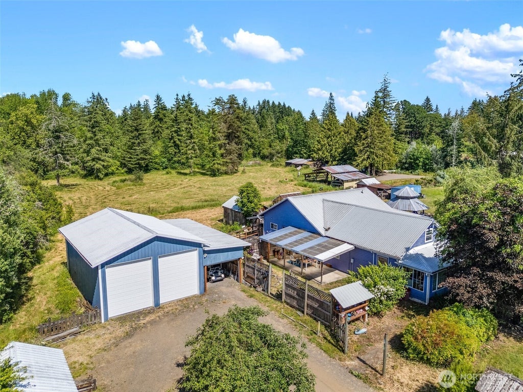 Experience serene country living on beautiful, usable acreage with this well-designed 3-bedroom, 2-bathroom home. A private guest area offers its own entrance, spacious bedroom, full bath, and walk-in closet—ideal for visitors. The main living area features a kitchen with eating bar, dining space, and both a family and living room for added comfort. Stay comfortable year-round with a ductless heat pump and AC, and enjoy the convenience of high-speed fiber internet. Step outside to a wrap-around covered deck, perfect for outdoor dining or relaxing. The property boasts a large shop, barn, greenhouse, multiple outbuildings, full RV hookup, landscaped grounds, and small ponds. A peaceful retreat with space for it all!
