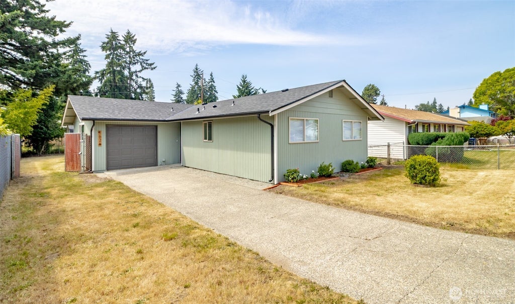 Charming Rambler with Modern Updates! Welcome to this beautifully updated 3-bedroom home in a wonderful Tacoma location. Step inside to discover a stylish interior featuring durable LVP flooring, plush carpeted bedrooms, & a cozy living room highlighted by a shiplap accent wall. The kitchen shines w/white shaker cabinets, quartz countertops, stainless appliances, & white picket tile backsplash complemented by matte black hardware & fixtures throughout. The bathroom offers a sleek, modern design w/a white shaker vanity, quartz counters, & a tiled tub/shower surround. Efficient LED lighting throughout. Enjoy outdoor living in the fully fenced yard, and take advantage of the unbeatable location directly across from Cloverdale Park. Must-see!