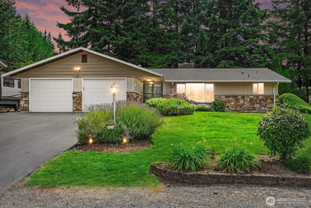 Tucked in the desirable Meridian Manor neighborhood, this single-story gem offers private access to Lake Meridian via a gated HOA park with a boat launch just down the street. Featuring 3 spacious bedrooms and 2 full baths, the home boasts a remodeled kitchen with cherry cabinets & granite counters, an open great room with cozy wood-burning fireplace, & generous natural light throughout. The primary suite feels like a private retreat with direct access to the backyard, where a hot tub awaits beneath a pergola—perfect for unwinding under the stars! The large yard offers plenty of privacy with mature trees, a concrete patio, & a spacious lawn to relax or play. Bonus with RV parking & hookup! Store your boat on-site and launch with ease!