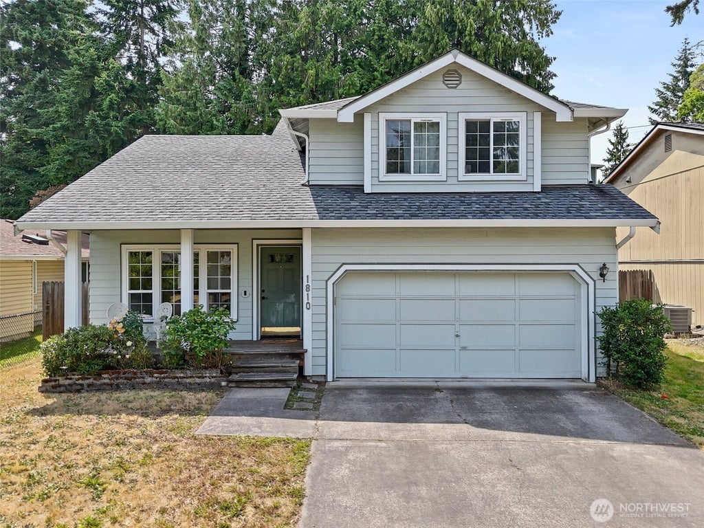 This charming 3-bedroom, 2.25-bath Tacoma home has everything you're looking for, including a thoughtful floorplan and inviting spaces throughout, at a price your can afford! The main level features a vaulted living room, formal dining, 1/2 bath and a bright kitchen with eating space and stainless appliances that opens seamlessly into a spacious family room with ample natural light. Upstairs offers a large primary suite with attached bathroom, 2 additional bedrooms, and a full bath. Enjoy outdoor living with a fully fenced yard and two-tiered deck surrounded by mature trees. Energy-efficient water heater installed approx. 2 years ago. Two-car garage, driveway parking, and easy access to Hwy 16, I-5, shopping, and parks.