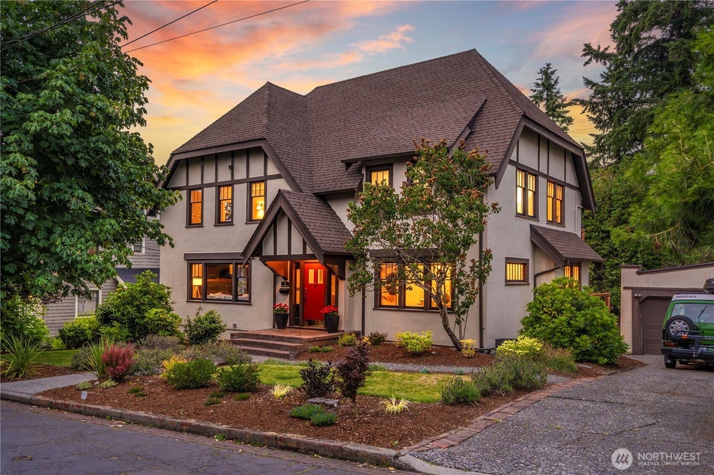 Nestled in a historic neighborhood just a short stroll from Old Town, this charming English Tudor blends timeless craftsmanship with modern updates. Tall ceilings on all 3 levels create a sense of light and space throughout the home, while rich dark wood trim, coved ceilings, and built-ins highlight its original character. Glass French doors open to a cozy main floor office, with all 4 bedrooms upstairs. The fully finished basement with 3/4 bath and separate entrance, offers flexible space for guests or extended living. Step out onto the expansive entertainer’s deck off the kitchen to enjoy partial water views. This is a rare opportunity to own a piece of history with all the comforts of today’s living! Pre-inspected for you.