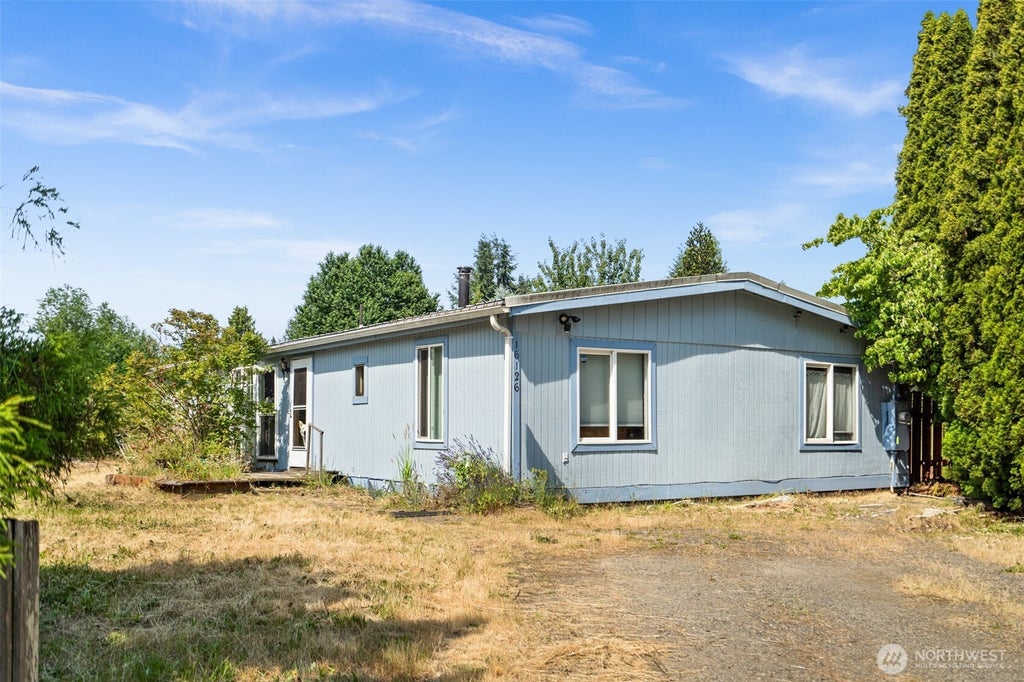 Bring your vision and tools! This 3-bedroom, 2-bath 1984 manufactured home sits on a spacious, level lot with views of Mt. Rainier and a peaceful greenbelt backdrop. Located in a quiet, commuter-friendly neighborhood, this property offers incredible potential for the right buyer. The bathrooms have seen some thoughtful updates, with a few finishing touches still needed. Several windows have been replaced, and the durable metal roof adds long-term value. A cozy wood-burning stove adds charm and warmth. The lot provides excellent space for an RV, boat, or other big toys, plus there's a small outbuilding for additional storage. Full of promise and priced below assessed value. Sold strictly AS-IS.