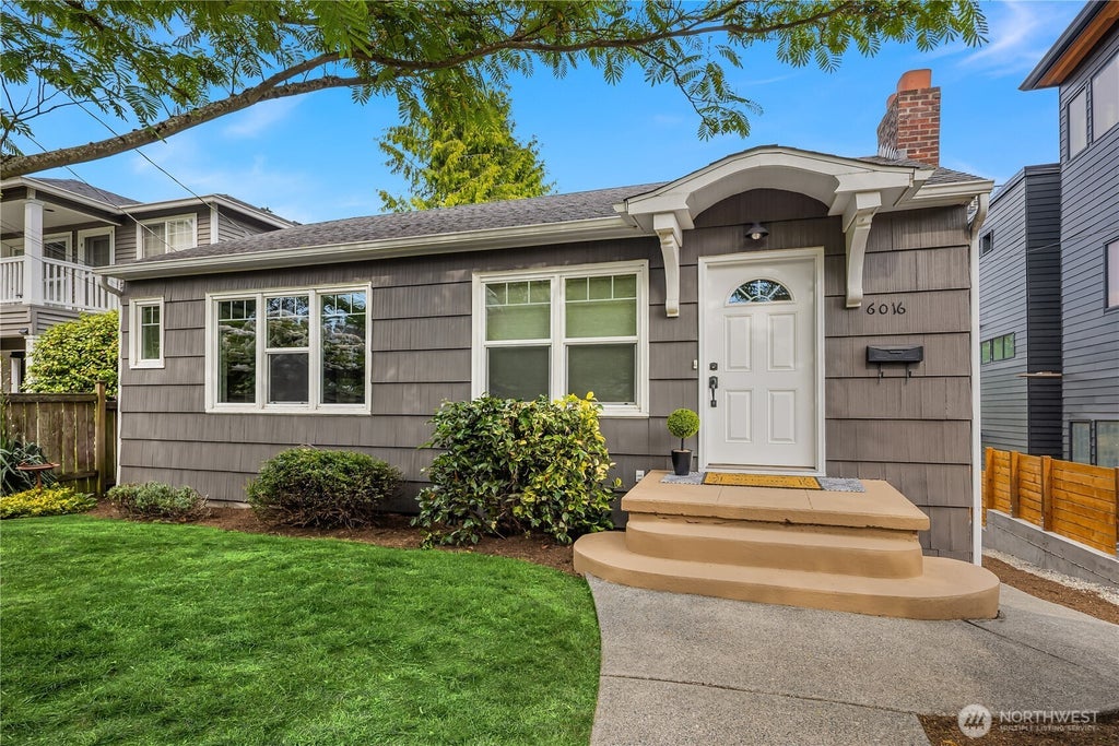 Breathtaking lake & mountain views set the stage for this charming 3 bed, 1.75 bath home offering 1,606 sqft of light-filled living. Main level features a warm living room w/ hardwoods & arched entry to the dining room, all framing the stunning backdrop. The updated kitchen blends modern ease w/ classic charm. 1 bed & full bath complete the main. Downstairs, the finished lower level includes 2 beds, ¾ bath, laundry, storage, new carpet & living space—ideal for daily living, guests, or office/flex use. Expansive freshly painted deck, peaceful yard w/ planter box, alley access to covered carport & off-street front parking. Short walk to coffee, bakeries, parks, Metropolitan Market, U-Village & more. Mins to I-5 & downtown SEA.