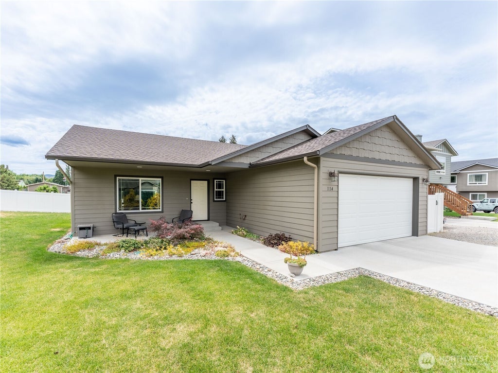 This home is located in a convenient location and feels brand new! Privately tucked away on a large corner lot with wonderful views and space! Built in 2018' by Stimac Construction, this home has been lovingly maintained and is turn-key with all the extras that you don't get with new construction. (full landscaping, window coverings, fencing and washer and dryer!) The living room is large and the Kitchen with peninsula is open to the dining and Living. 3 bedrooms including a primary suite with walk-in closet. Yard has been professionally landscaped with underground sprinklers and is low maintenance. Vinyl fencing too! Hurry! This one level home has it all!