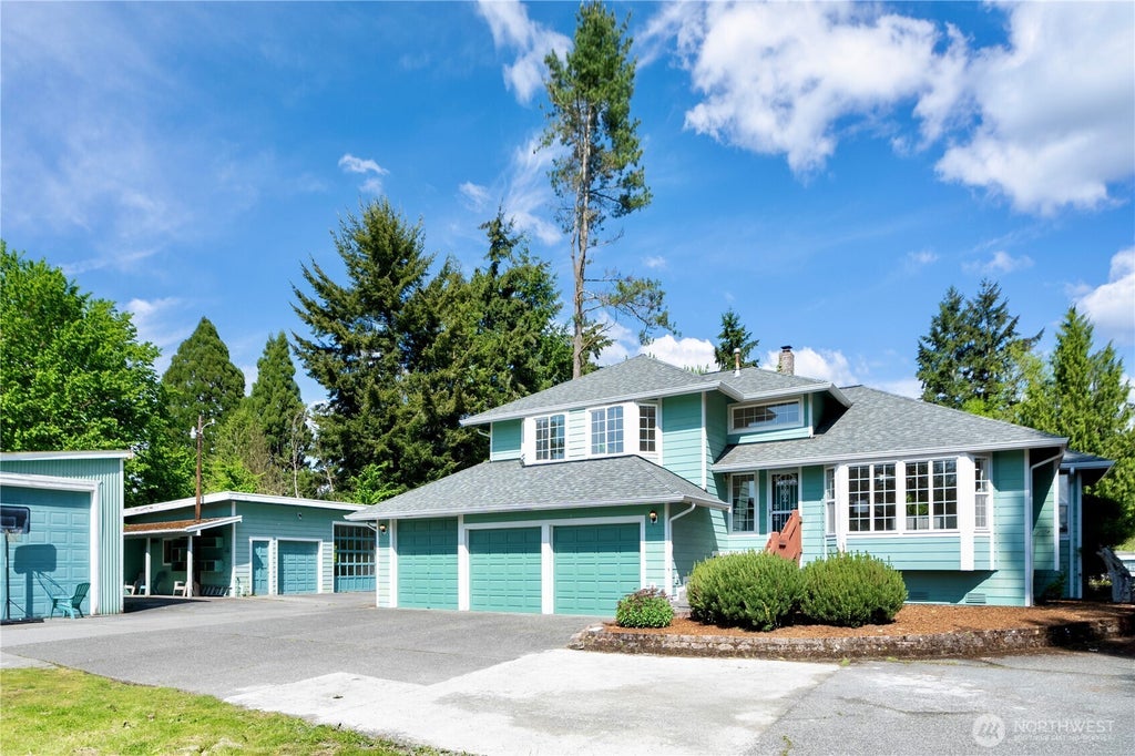 Rare opportunity to own a private, gated estate at the end of a quiet road on a level 2.15-acre lot in Kenmore! Enjoy peace, privacy, and park-like grounds with scenic views. This light-filled home features vaulted ceilings, skylights, and bay windows. All brand new: roof, flooring, carpet, interior paint, kitchen countertops, bathroom vanities. The main level offers a bright kitchen and living area that opens to a large deck. The oversized primary suite includes a 5-piece bath, walk-in closet, and French doors. Car and boat enthusiasts will appreciate the 6 garages, RV garage, shop and storage. New Kenmore city Building code allows this huge land to build 2 ADUs, buyers to verify. Plus, no HOA dues.