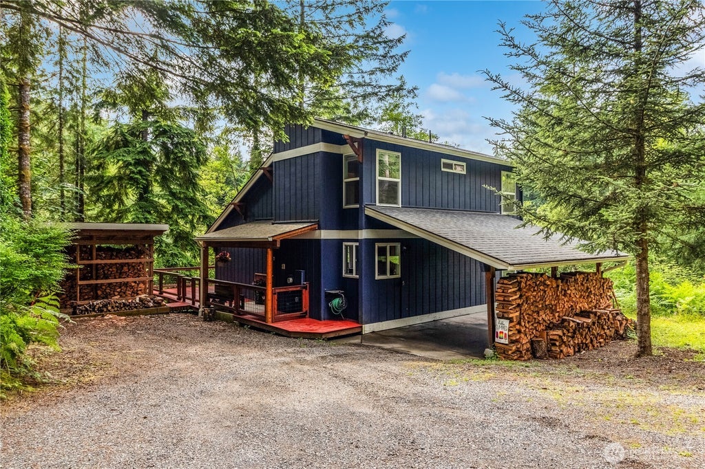 Just inside Gate 5 of Sudden Valley, this home lives larger than its square footage & is filled with light. The living room features soaring vaulted ceilings, a wood-burning fireplace & forest views through walls of windows. An open hallway above enhances the airy feel. Two bedrooms & a full bath upstairs; a third bedroom & 3/4 bath on the main level. Outside, enjoy a wraparound deck, carport & a fully stocked woodshed for cozy winter fires. Located near a playground, the WTA bus line & trailheads for Lookout Mountain & Stimpson. This home offers comfort, warmth, and easy access to outdoor adventure. Community amenities include golf, parks, trails, Lake Whatcom access via the marina and beaches, pickleball courts, two pools & much more!