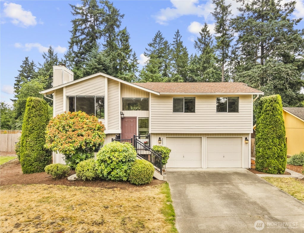 First time on the market in 40 years, this home has been cared for and well loved for decades. Located on a large private lot in the quiet Hidden Oaks cul-de-sac, this property is in a great community w/ no HOA. Explore the potential & bring your vision for some cosmetic updates. Step inside the light-filled upstairs w/ vaulted ceilings & large front windows looking out at a view of Mount Rainier. The kitchen has a lovely garden window & the covered back deck is perfect for BBQ's & entertaining. Recent updates include a new composite front deck & an updated furnace w/ central AC. Large 2 car garage has space for storage & a workbench. Minutes from JBLM, parks, Spanaway lake, trails, shopping & freeways. This estate sale is being sold AS-IS.