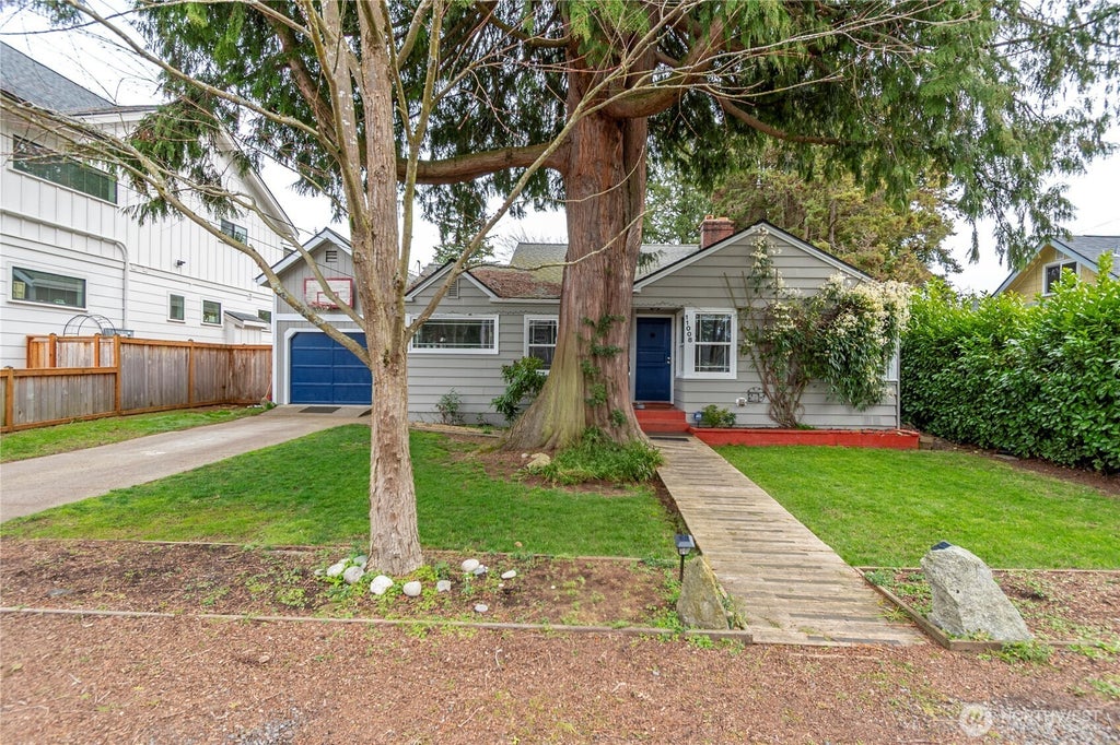 Discover this 1 ½ story charmer on large lot in thriving Greenwood. Beautiful hardwood floors and formal entry, bright kitchen, formal dining. 2 BR upstairs and 1 BR and laundry in basement, 1.5 BA. Private and fully fenced backyard, level, with patio area and sprinkler system, mature trees. 2 car tandem garage with work area. Awesome location, easy access to I-5 and 99, shopping, Interurban Trailhead, Carkeek Park. Huge garage attic storage area.