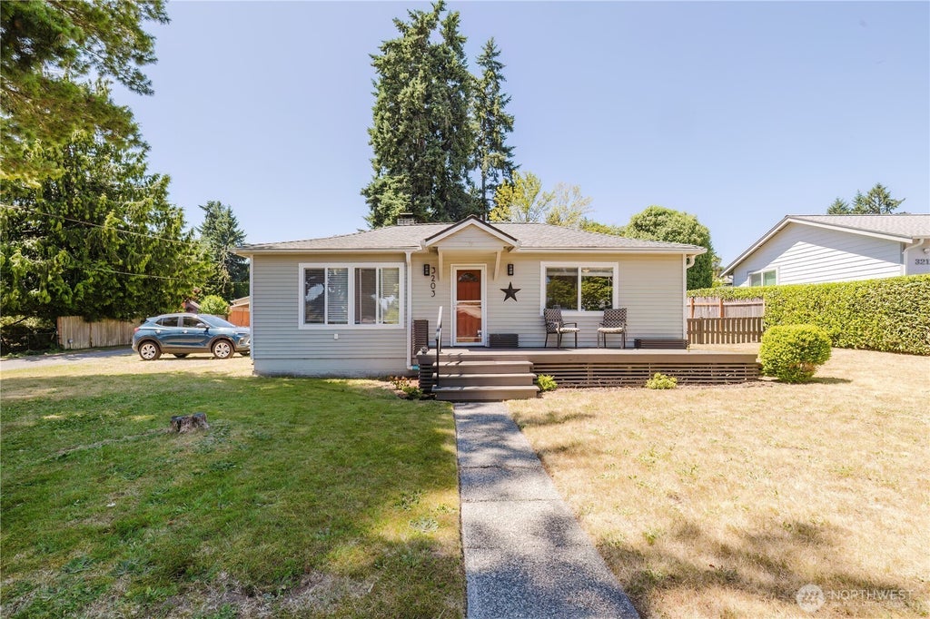 Look no further, this cozy rambler awaits to welcome you home. Boasting 2 bedrooms, 1 bath, an open floor plan and all the charm, this home features modern updates for easy living. Fully fenced, a third acre of outdoor living space to enjoy those beautiful PNW summers.View of Mt. Rainier. Entertain on your front or back decks and create your own private oasis while still conveniently in town. Newer flooring, gas heat, appliances, granite, electrical, plumbing, septic and roof 2018. This charmer will not last long!