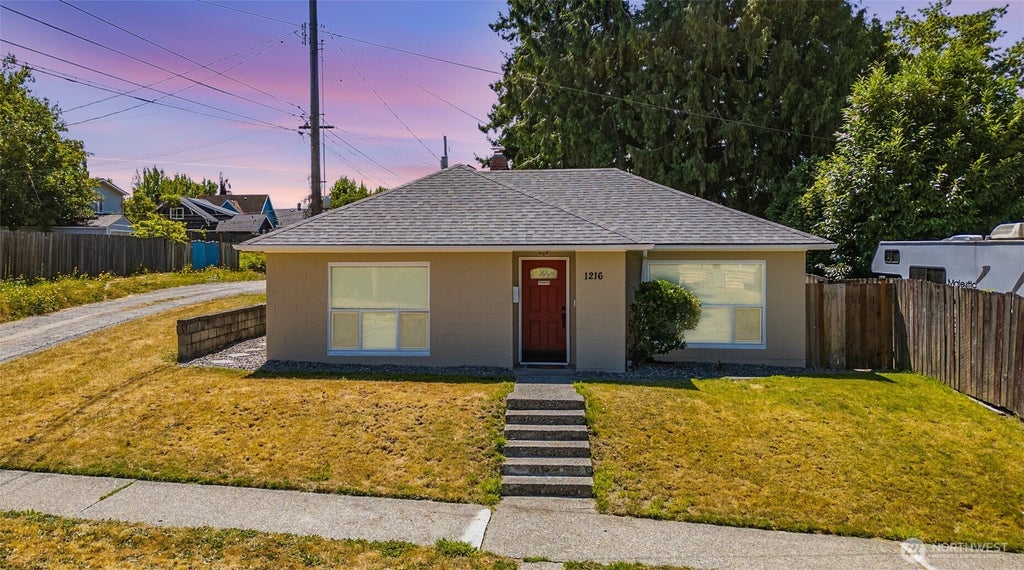 An inviting 1940s 2-bed, 1-bath home with mid-century flair and large windows throughout. Pre-inspected and move-in ready with a new roof (house & garage), new furnace, and new garage doors. The spacious detached 2-car garage offers alley access—perfect for parking or a workshop. Extensive 2022 renovations include LVP flooring, interior/exterior paint, window coverings, updated bath, new kitchen with quartz counters, appliances, plumbing, electrical, and more. Solid cinderblock construction keeps it cool in summer. Fully fenced, low-maintenance yard with cedar tree. Quiet neighborhood with quick access to I-5, Lincoln District, University Place, Ruston Way & Costco. A tucked-away gem near city conveniences.