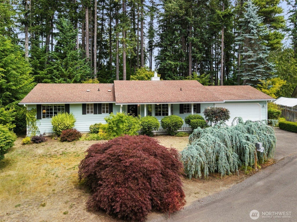 Discover the charm of this 3 bedroom, 1.75 bath rambler located at the top of a hill in a quiet cul-de-sac. Large living room with fireplace insert, eat in kitchen, primary with a 3/4 bath. Freshly painted exterior. Covered porch/ Walk out the back slider door of your single level living home and enjoy the peace and privacy of nature on this.31-acre property surrounded by nature. Extensive deck and backyard, ideal for entertaining. Central Kitsap school district/ Close to Puget Sound Naval Shipyard and Bangor Naval base/shopping /medical centers.