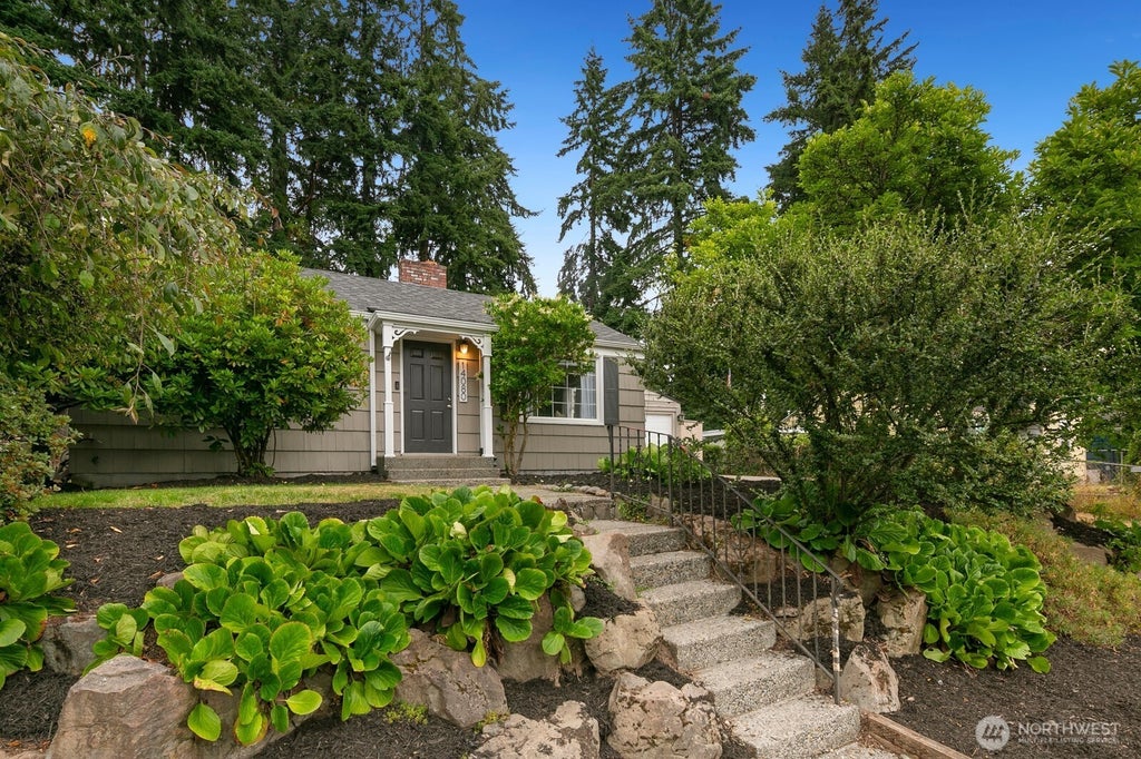 Charming Cape Cod style home on a beautifully landscaped lot! This light-filled abode offers easy one-level living with hardwood floors, cozy living room, two wood burning fireplaces, and a spacious family room that opens to the patio. Kitchen with breakfast bar flows into the dining area - perfect for entertaining! Large primary bedroom and updated bath with double sinks. Enjoy the inviting outdoor space with grape-covered arbor overlooking the large, fully fenced backyard or stay cool inside with A/C! Detached 1-car garage, energy-efficient windows, brand new roof and gutters, and just minutes to Burke-Gilman Trail and Jackson Golf Course! Pre-inspected for your convenience!