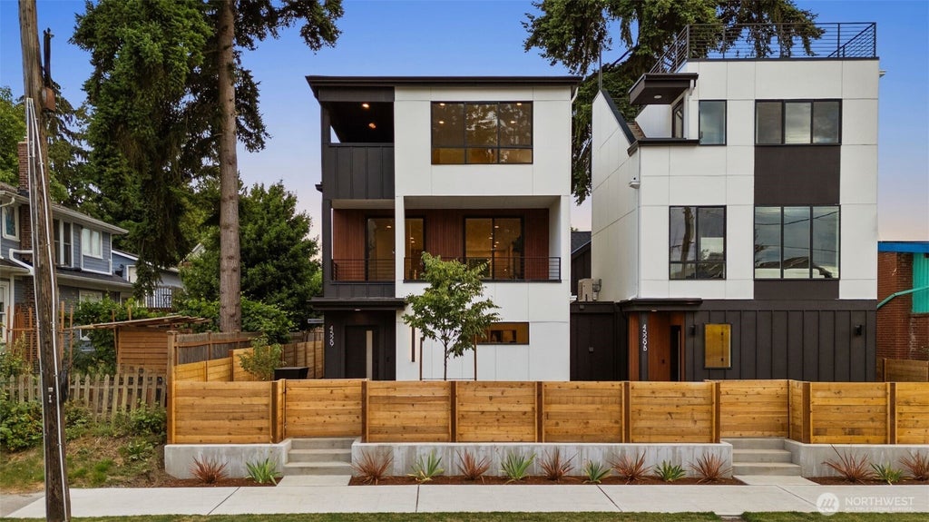 Rare find in the Hillman City neighborhood. Lots of upgrades and features. Roof top deck with beautiful Seattle skyline and territorial views. Two car attached garage with glass frame doors and space for EV Chargers. Bright open floor plan with an abundance of windows. Gourmet kitchen with island, quartz counter tops and full backsplash. Stainless steel appliances. Great room concept with dining area and fireplace. Luxury vinyl planks throughout. Dual sinks in primary bath. Split systems for efficient heat and A/C. Vaulted ceilings in 3rd floor. Tile in bathroom floors, walls, tubs and shower surround. Custom Walk in closets in 3rd floor bedrooms. Come check out this Modern Beauty.