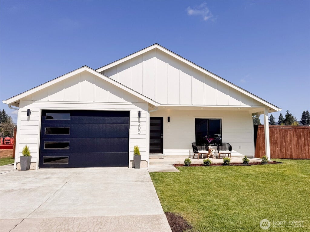 Brand new one-level 3-bed/2-bath home on a 0.33-acre corner lot in & peaceful new subdivision. Built in 2024, this home features vaulted ceilings, open layout, & durable laminate flooring throughout. The kitchen offers quartz waterfall countertops, stainless steel appliances, & modern cabinetry, flowing into a bright dining & living area filled with natural light. The primary suite includes a walk-in closet & ensuite bathroom. Enjoy year-round outdoor living with covered front & back patios. A fully fenced backyard is landscaped with an automatic sprinkler system & offers views of nearby hills & sunrises. Just 45 minutes from PDX with easy access to local parks, lakes, & Mt St Helens. All appliances included, & fiber internet is available!