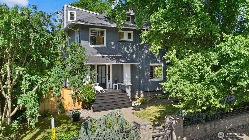 Fabulous New Price on this 1909 charmer! *With a strong offer, seller willing to offer a $25K credit for closing costs or rate buy-down.* Leaded glass windows, gorgeous original hardwoods, high ceilings and a cozy wood burning FP highlight some of the beautiful features. Bright & cheery kitchen with SS Appliances, granite counters, and a darling breakfast nook. 3rd floor loft has views of the Olympics, Magnolia and sunsets! Fully finished basement with its own entry can be additional living space with office, full bath and bdrm. Basement kitchen space is fully plumbed and ready for your vision! Large, private deck wraps around to the fully fenced yard. Low maintenance turf is great for dogs! Bonus, 2+ car driveway provides envied parking!