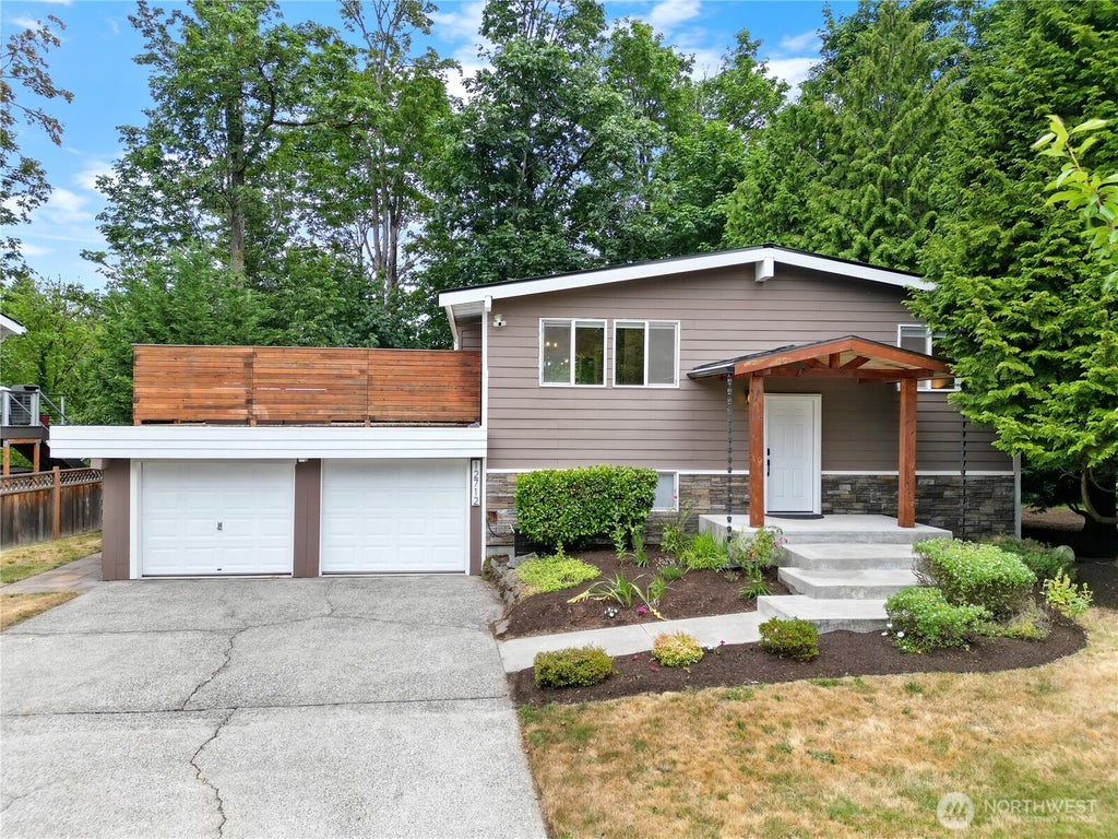 Tucked in a friendly, well-established neighborhood, this inviting home blends comfort and style with thoughtful updates made over time. Bathed in natural light, it features a refreshed kitchen off the deck—ideal for entertaining—two generous living spaces for work and play, and a spacious lower-level primary suite with walk-in closet and updated ¾ bath. A new roof offers peace of mind, and A/C keeps things cool on warm summer days. Superb greenbelt privacy with valley & mountain views, too! The attached garage, extended driveway, low-maintenance yet vibrant yard, and deck add everyday ease. Minutes from top rated schools, commuter routes, and the charm of Woodinville Wine Country—a perfect blend of lifestyle and location. Pre-inspected!