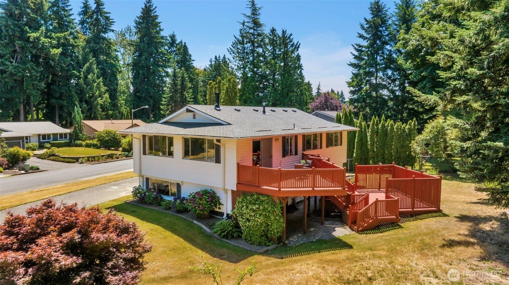 Wow! Surrounded by over 25 varieties of fragrant, mature rose bushes, this spacious 2,180 sq ft home offers beauty, comfort and room to grow. Nestled on a generous level 9,900 sq ft lot in a quiet cul de sac within the highly sought after Lake Washington school district. This 5 bedroom, 2 bath gem has space for everyone. The fully finished basement adds versatile living options, while recent updates include newer composition roof, gas furnace and water heater ensures move in ready peace of mind. Enjoy the large multi-level entertaining deck that has access to the backyard. Super location close to the new Totem Lake shopping village, freeways and schools. A rare combination of space, charm and location awaits you!